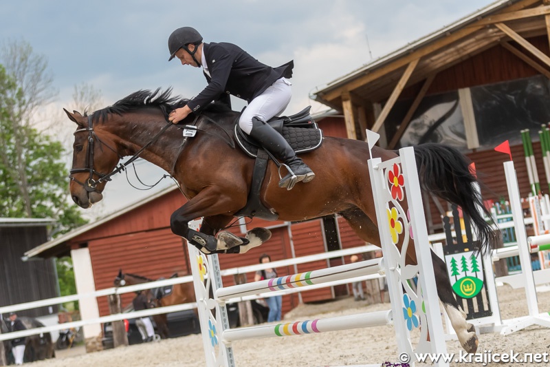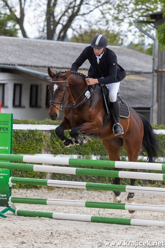 Skokovou soutěž st. L** - Memoriál Zdeňka Kotna - vyhrál Ing. Miloš Veselý s klisnou Džibara.