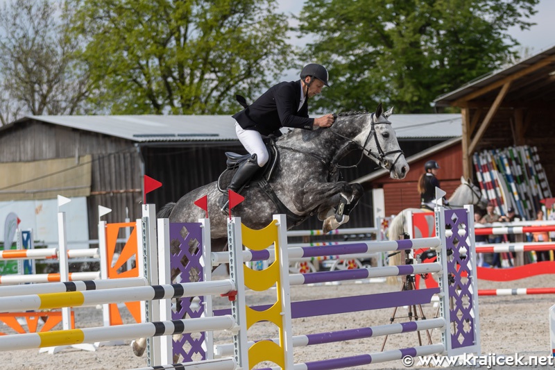 Skokovou soutěž st. L** - Memoriál Zdeňka Kotna - vyhrál Ing. Miloš Veselý s klisnou Džibara.