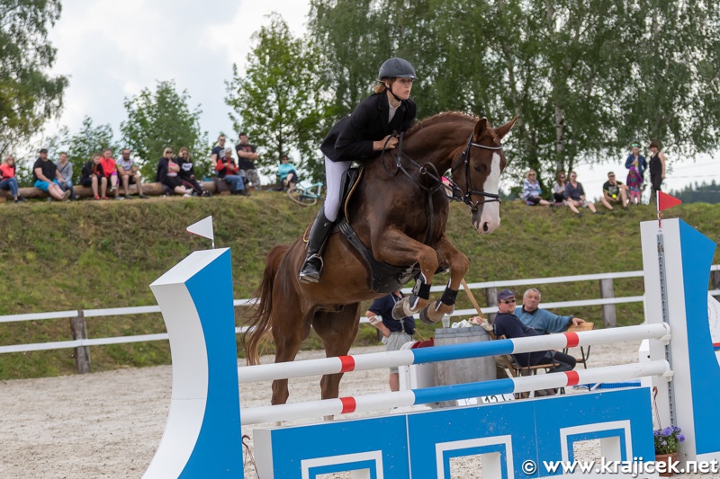 Skokovou soutěž st. L** - Memoriál Zdeňka Kotna - vyhrála domácí Michaela Balounová s klisnou Diamantixa.